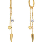 Discover the stylish Peak Hoops Multi Heart, featuring three chains adorned with a rivet, a full heart, and a clear stone hanging from the ring. Perfect for daily wear, you can combine the chains as desired as they are detachable from the ring. Seen here in shiny 14K gold plating.