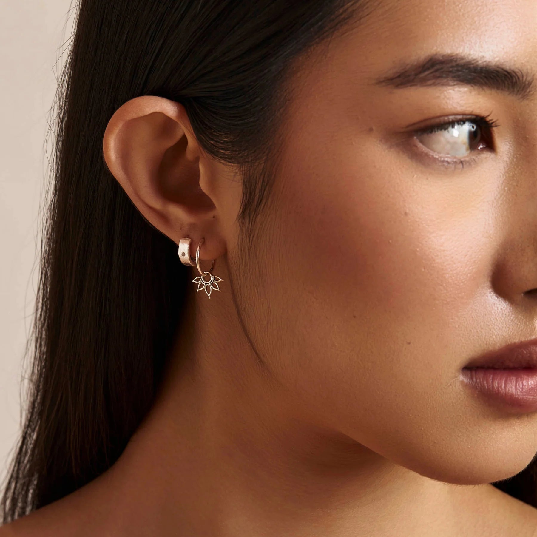 A charming dedication to the earthly spirit, the Amara Huggies are an intricately crafted and elegant floral symbol of rebirth and renewal.