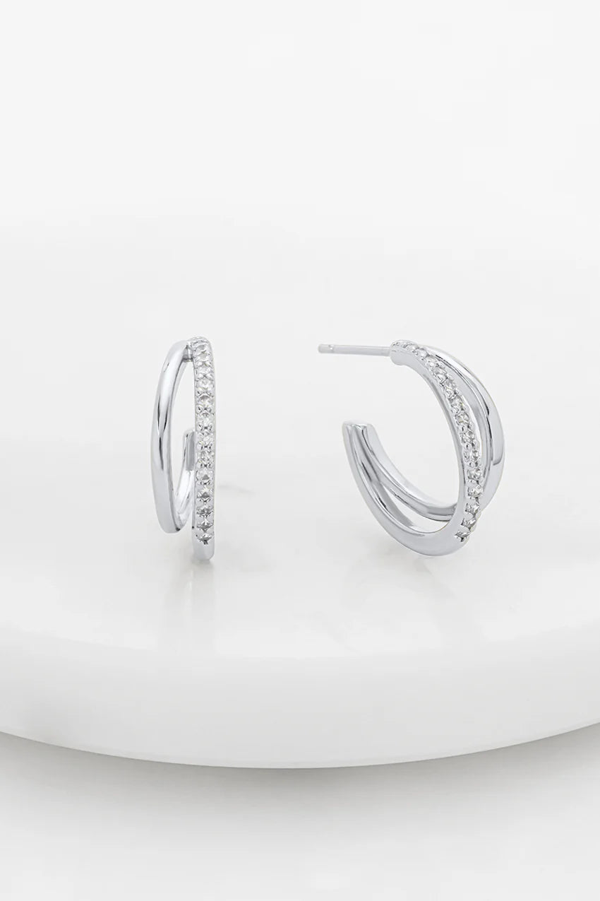 The Celeste Hoop brings a fresh twist to a timeless silhouette. With its double-layered design and a line of sparkling crystals, this silver-tone style offers just the right balance of elegance and edge. Perfect for elevating your everyday look or adding subtle shine to evening wear, the Celeste Hoop is made to be on high rotation.