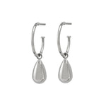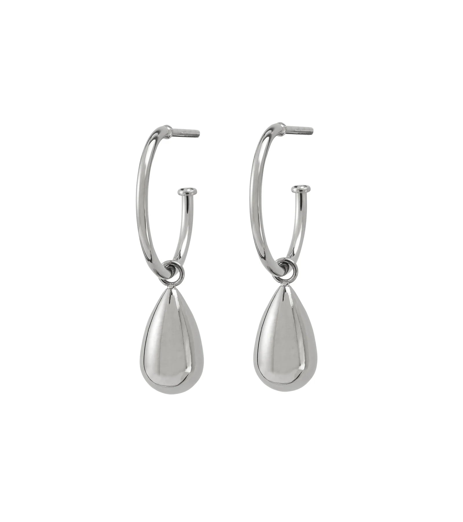 The Drop Mini hoops feature removable charms in the shape of a perfectly formed drop, seen here in shiny stainless steel. Ideal for creating a tailored look for ears with multiple earring holes.