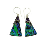 NZ Paua Shell with Sterling Silver Spiral Earring 26x14mm Rectangle
