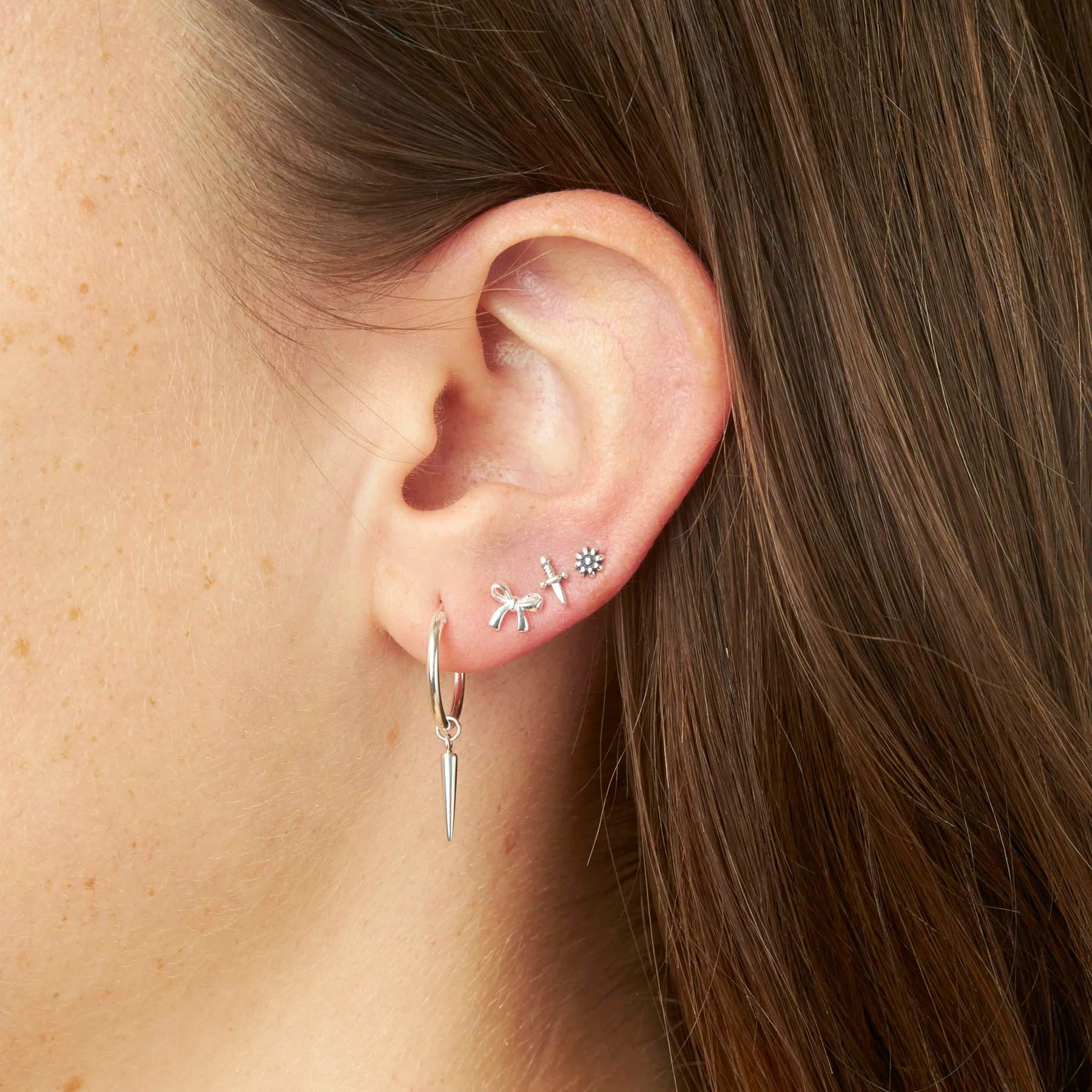 Add a hint of edgy minimalism to your daily earring stack with our elegant Sterling Silver Spike Sleepers.