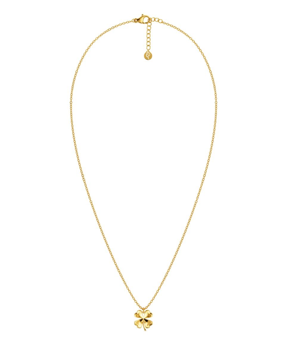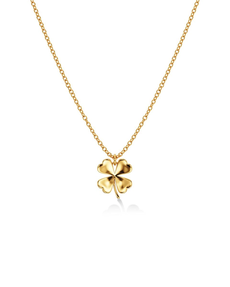 Lucky is a gorgeous four-leaf clover with slightly arched leaves and a small, short stalk. The clover in Lucky necklace hangs from a delicate anchor chain in shiny 14K gold plating. Combine with several necklaces in varying lengths and studs from the Lucky collection.