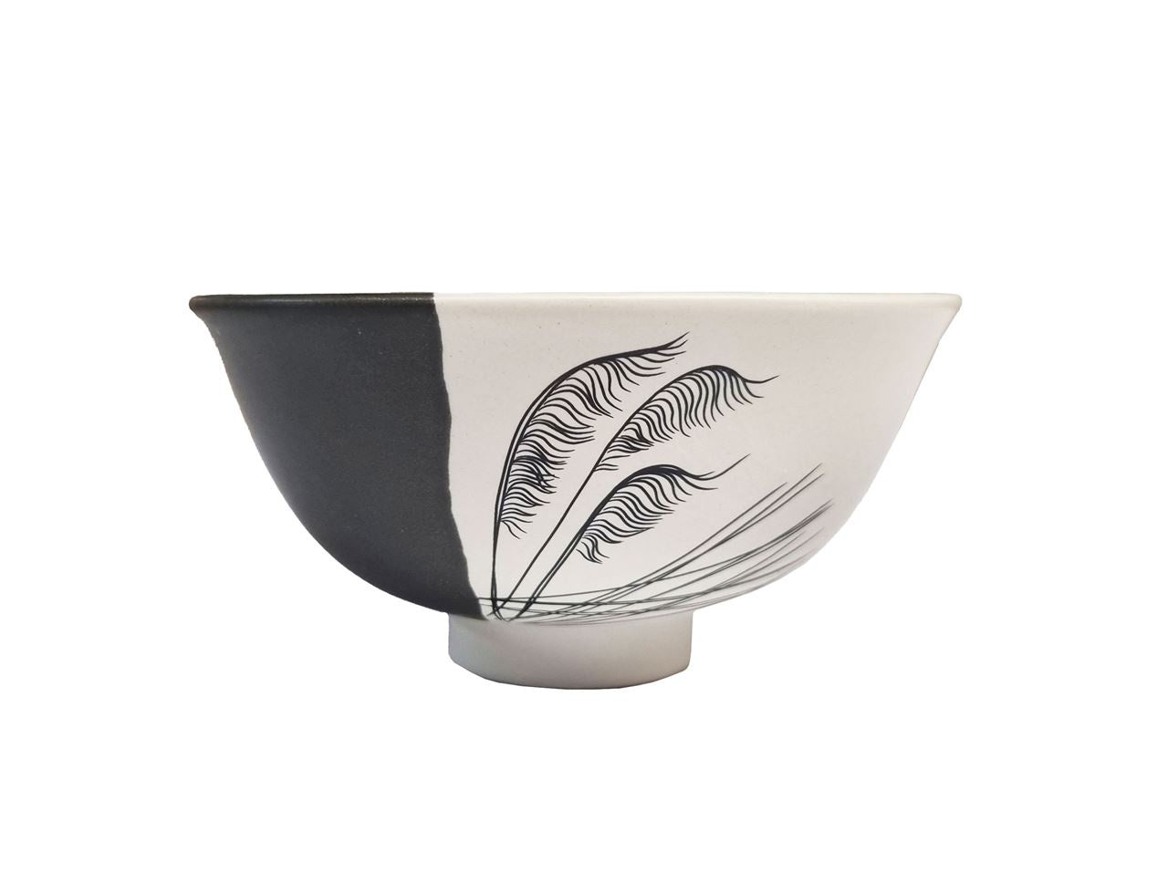Made from white porcelain, inside semi-gloss clear glaze with decal and unglazed outside.