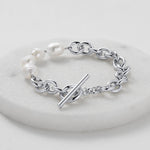 Gold-plated chain bracelet featuring pearl accents for feminine charm.