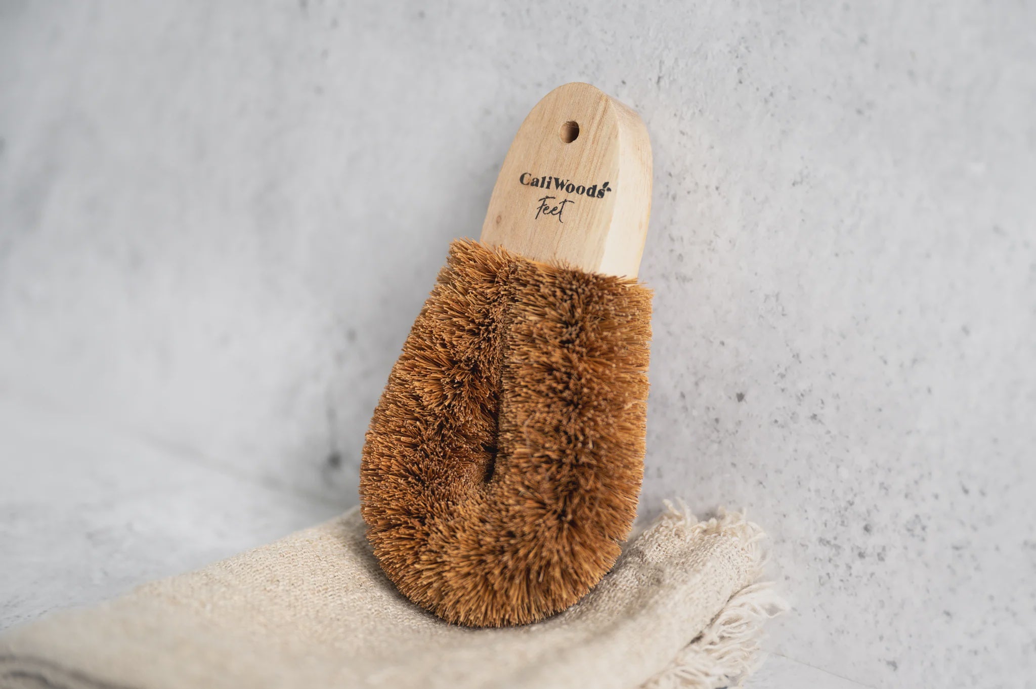 Keep your feet smooth and supple with the CaliWoods Foot Brush. Made from reclaimed rubber wood & coconut fibre it is specially designed to clean and scrub - a complete tootsie saviour! This shower essential is handmade by artesian women in Sri Lanka and is compostable at the end of its life.