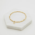 The Freya Bracelet is a sleek and stylish elastic bracelet featuring gold beads, offering a refined shine with a modern twist. Designed to be waterproof, this bracelet is perfect for everyday wear.