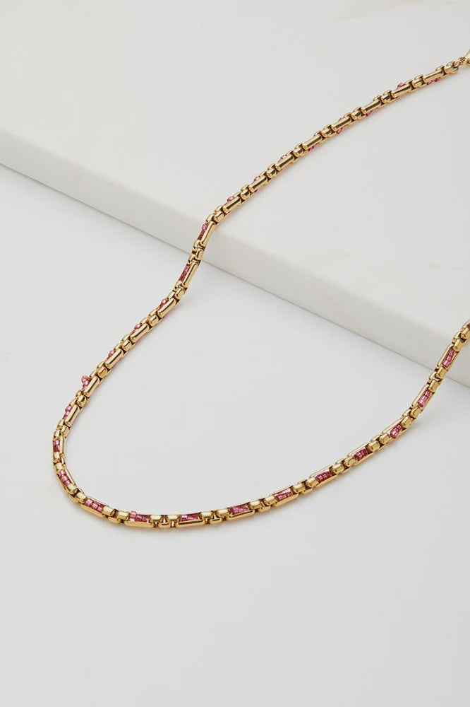 Elevate your necklace stack with the Luna Necklace, a delicate chain bracelet adorned with rouge beads interspersed between its links. This understated yet elegant piece adds a subtle pop of colour and texture to your ensemble, effortlessly blending sophistication with everyday charm. Perfect for layering or wearing solo, the Luna Necklace is versatile and timeless, making it an essential addition to your Jewellery collection.