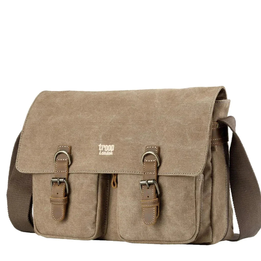 This Troop bag is made of super strong canvas with genuine Italian leather trim and detailed zip pullers. Lined in PU backed cotton.