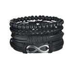Made up of four individual bracelets shown as in image (3 x leather bracelets and 1 x wooden beads). Includes the famous 'Infinity' pendant.