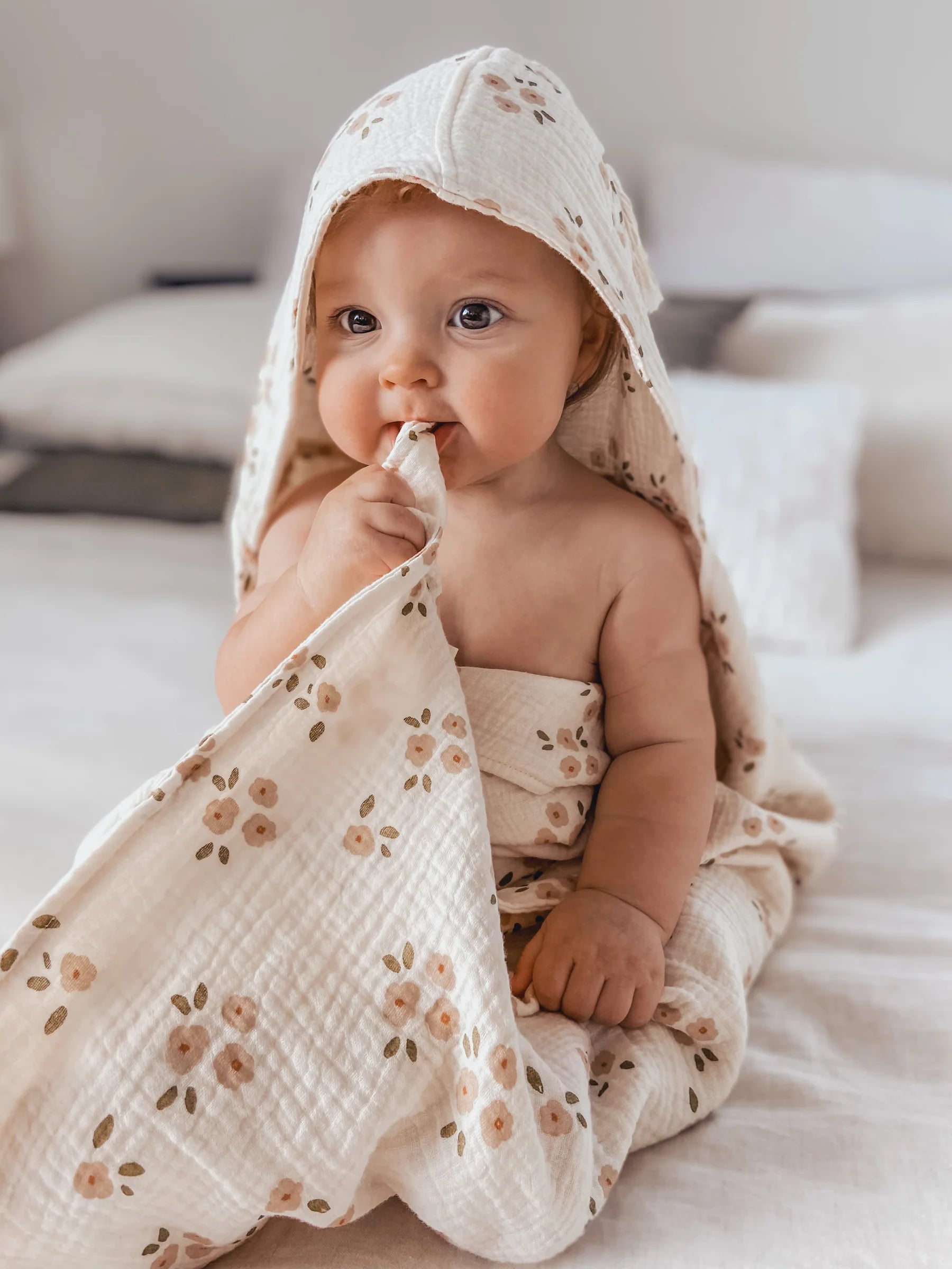 Over the Dandelions - Made 4 layers of GOTS certified organic muslin these towels are absorbent and lightweight. The organic cotton is as soft as a cloud and gentle on delicate skin.