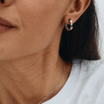 Monaco, the classic Edblad earring, can be seen here in shiny stainless steel with clear beautiful stones set on the entire inside. Here you will see the mini version that is ideal for those looking for a small earring that still makes a statement.
