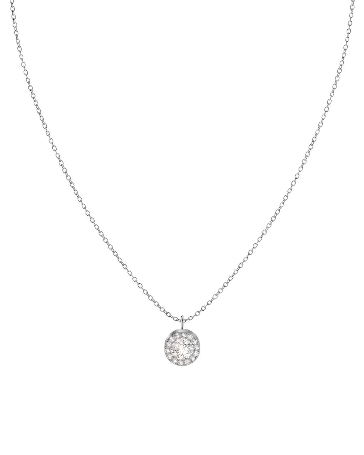 Our best-selling Thassos collection offers a wide range of versatile pieces to mix and match. The Thassos Necklace L Steel is decorated with one large stone, surrounded by 14 smaller ones, held on a fine chain. Shown here in polished stainless steel.