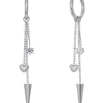 Discover the stylish Peak Hoops Multi Heart, featuring three chains adorned with a rivet, a full heart, and a clear stone hanging from the ring. Perfect for daily wear, you can combine the chains as desired as they are detachable from the ring. Seen here in shiny stainless steel.