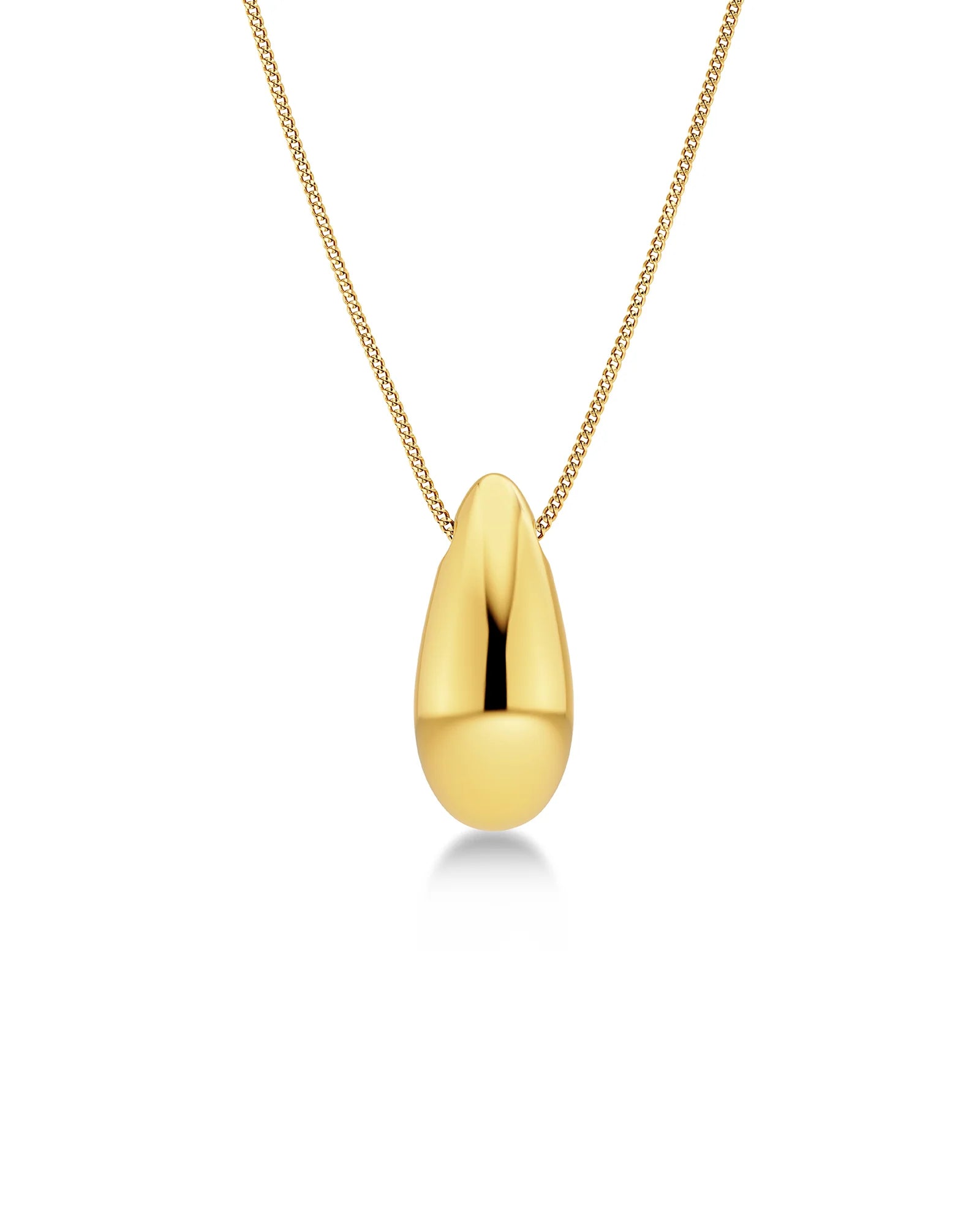 Harmony reimagines the classic pendant with its innovative floating design—a sleek 10×19mm teardrop in 14K gold-plated stainless steel that glides effortlessly along your chain. Choose from three adjustable lengths (42cm, 45cm, 48cm) for customized elegance.