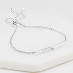 Introducing the Billie Bracelet, a chic and versatile accessory that will enhance any wrist. This adjustable bracelet features a delicate chain and a thin rectangle pendant adorned with a sparkling crystal. The minimalist design of the Billie Bracelet exudes elegance and sophistication, making it suitable for any occasion. With its adjustable length, it offers a comfortable and customisable fit for all wrist sizes. Elevate your style and add a touch of glamour with the Billie Bracelet, a must-have addition to your jewellery collection.