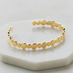 Featuring a hammered disk design, this bracelet catches the light beautifully, showcasing its textured finish. Perfect for both day and night looks, the Chloe Bracelet makes a sophisticated statement, whether worn solo or paired with the Chloe Necklace, Ring and Earrings to complete the collection.