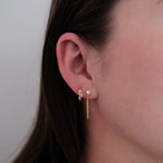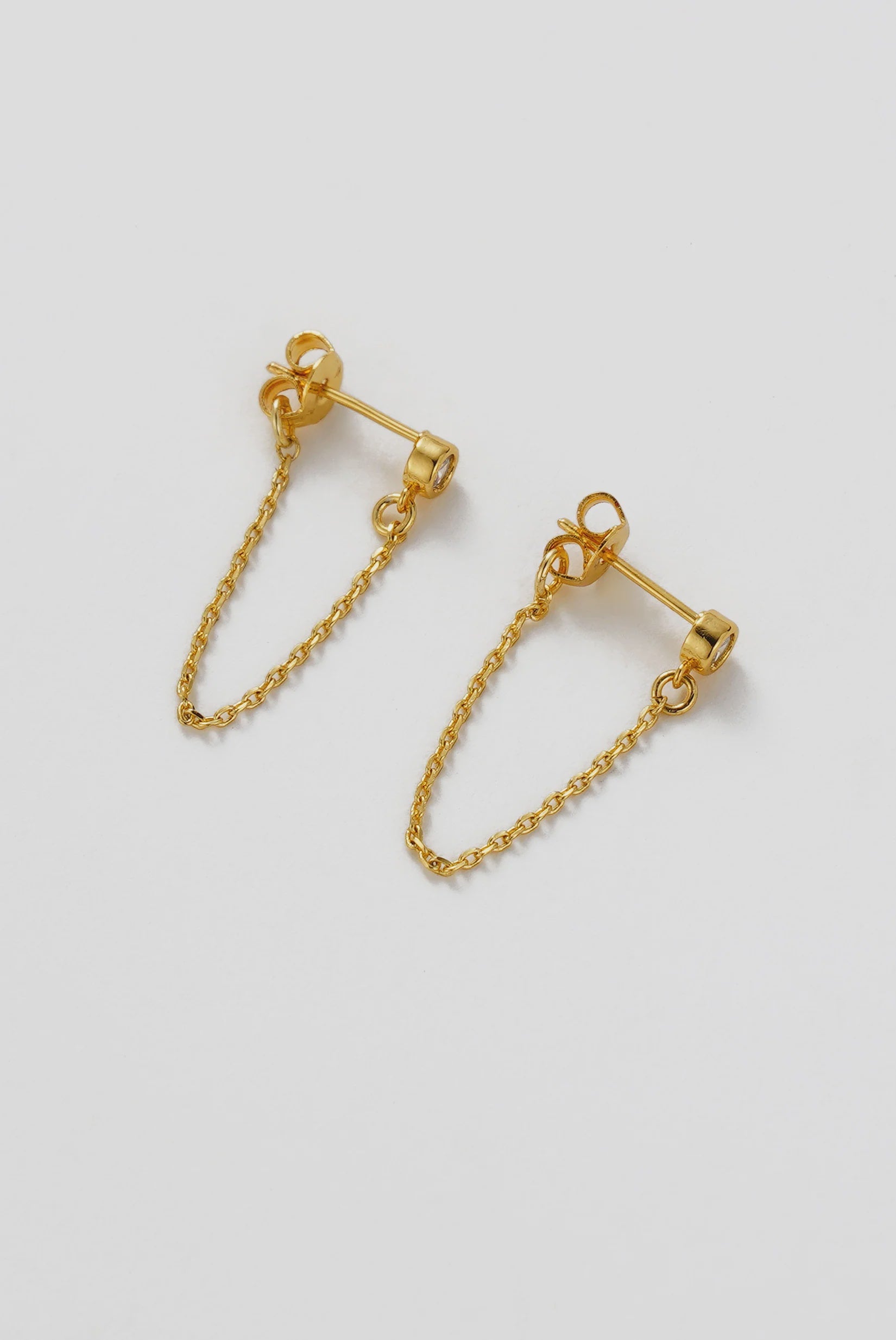 The Crystal Chain Wrap Earring is a modern take on a classic stud. Featuring a sparkling crystal set in a sleek bezel and a delicate gold chain that wraps elegantly around the ear, this style blends subtle sparkle with edgy sophistication. Perfect for layering with other studs or hoops, it’s a versatile piece that transitions effortlessly from day to night.