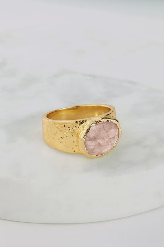 Introducing the Daniella ring: an embodiment of elegance and grace. Crafted in radiant gold and adorned with a captivating rose quartz stone, this ring exudes timeless charm.