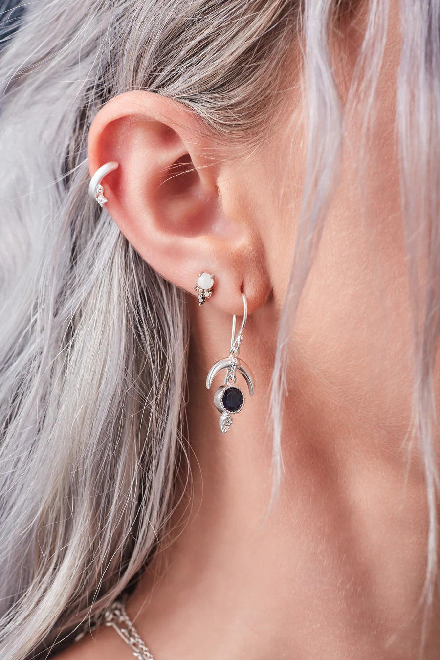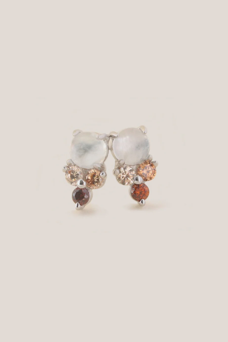 A magical Moonstone takes centre stage, often called a visionary stone; Moonstone is believed to provide clarity and promote inspiration. Complimented by three sparkly cubic zirconia in dusky shades. sparkle into the sunset ...