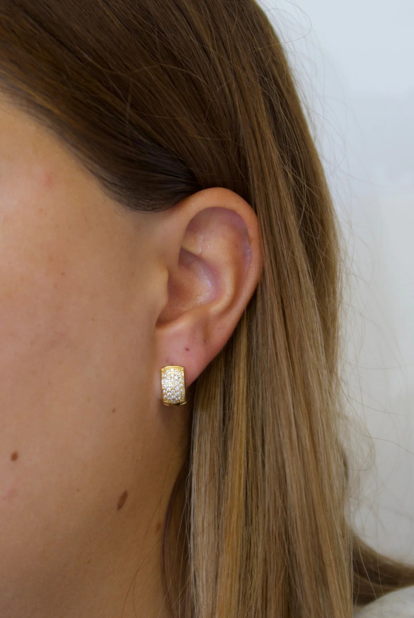 Meet our Hannah Huggies – bold, beautiful, and bedazzled. These huggie earrings are adorned with sparkling crystals, adding a touch of glamour to your everyday style. The Hannah Huggies effortlessly hug your earlobe for a comfortable yet eye-catching look. Elevate your elegance with the dazzling charm of Hannah Huggies, your go-to choice for a touch of sophistication with a hint of sparkle.