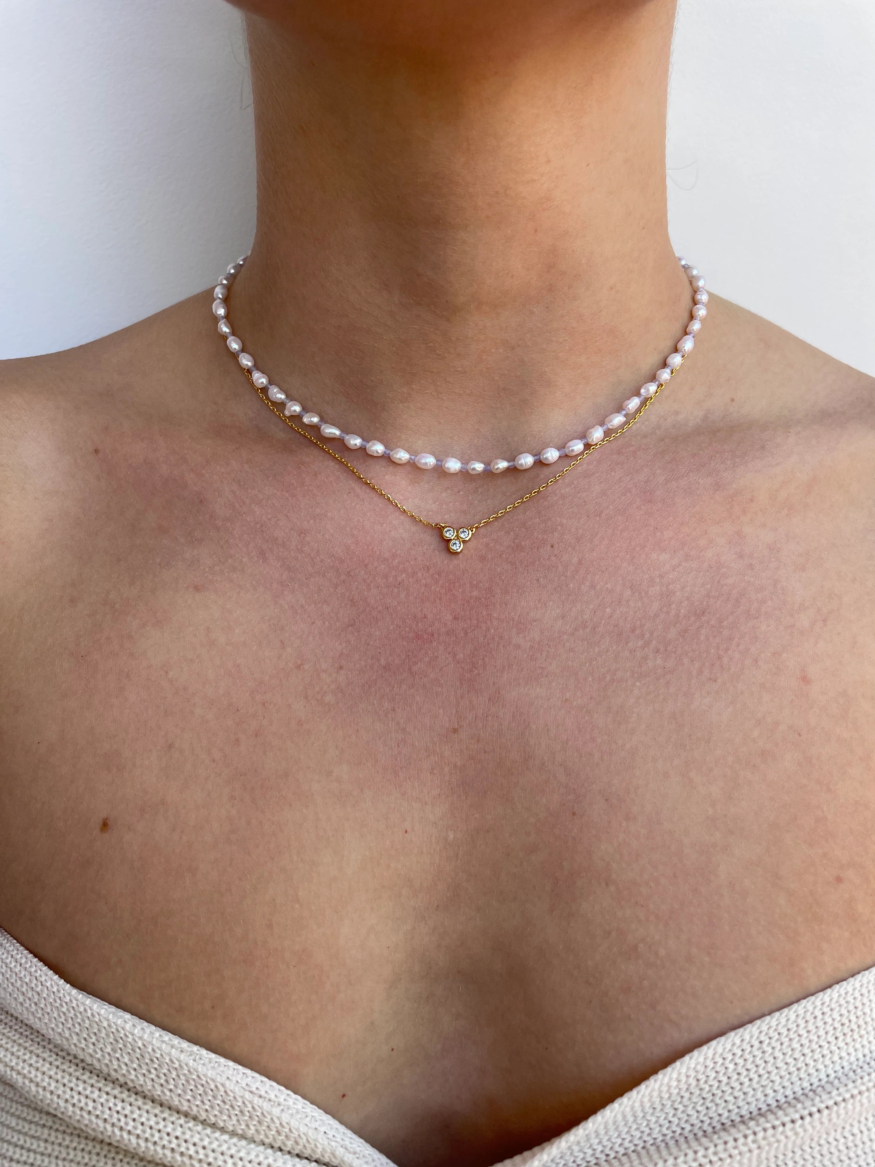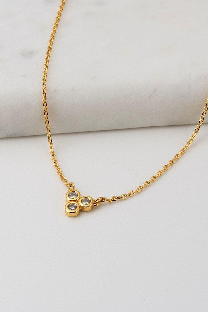 Introducing the Isobel Necklace, a dainty and elegant piece that will effortlessly enhance your outfit. This necklace features a delicate thin chain with a small trio of sparkling crystal pendants. The crystals catch the light beautifully, creating a mesmerising display of brilliance and adding a touch of glamour to your neckline. The adjustable chain length ensures a comfortable fit, allowing you to customise it to your preference. Whether you're dressing up for a special occasion or adding a subtle sparkle to your everyday look, the Isobel Necklace is the perfect accessory. Embrace the allure of the crystal trio and let it illuminate your style with its timeless charm and grace.
