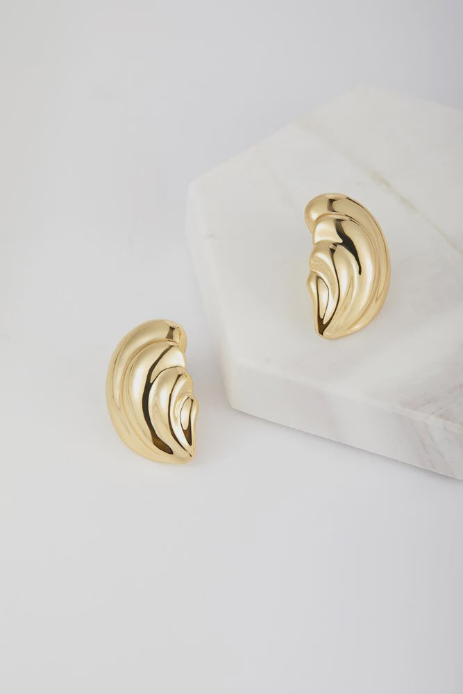 The Kayla Earrings are shell-design statement studs, embodying effortless summer elegance and perfect for sunny days.