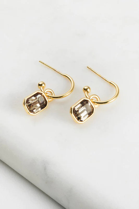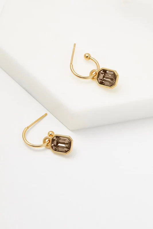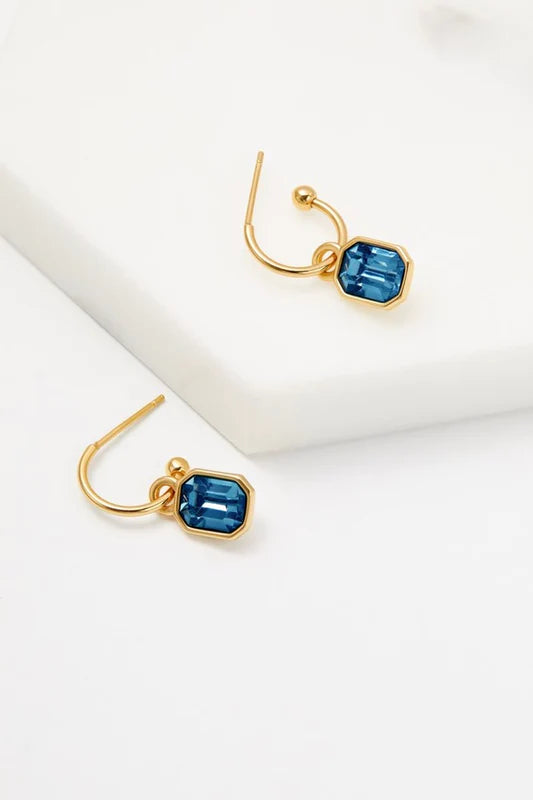 A delicate and stylish accessory that combines a hoop design with a rectangular sea-coloured crystal drop. These earrings exude a sense of modern elegance and understated charm. The delicate hoop adds a touch of sophistication, while the rectangular crystal drop brings a vibrant pop of colour and visual interest.