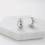 Introducing Zafino's Lottie Earrings in Silver, a stunning piece that effortlessly combines modern design with timeless elegance. These earrings feature a unique, textured wrap-around design that adds a touch of sophistication and flair to any outfit. Water Resistant.