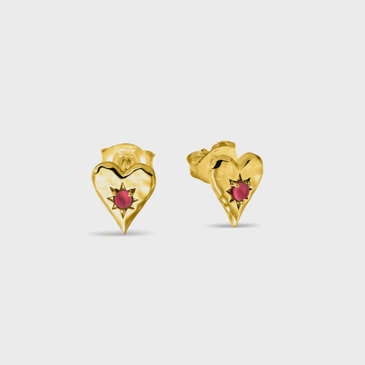 Love Heart Garnet Studs Gold