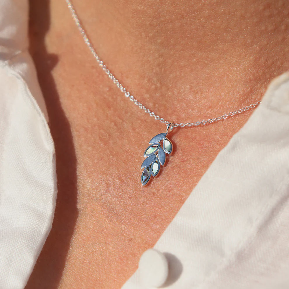 Beautifully crafted Paua leaf necklace showcase the iridescent hues of New Zealand's native Paua shell, capturing the essence of nature’s beauty.
