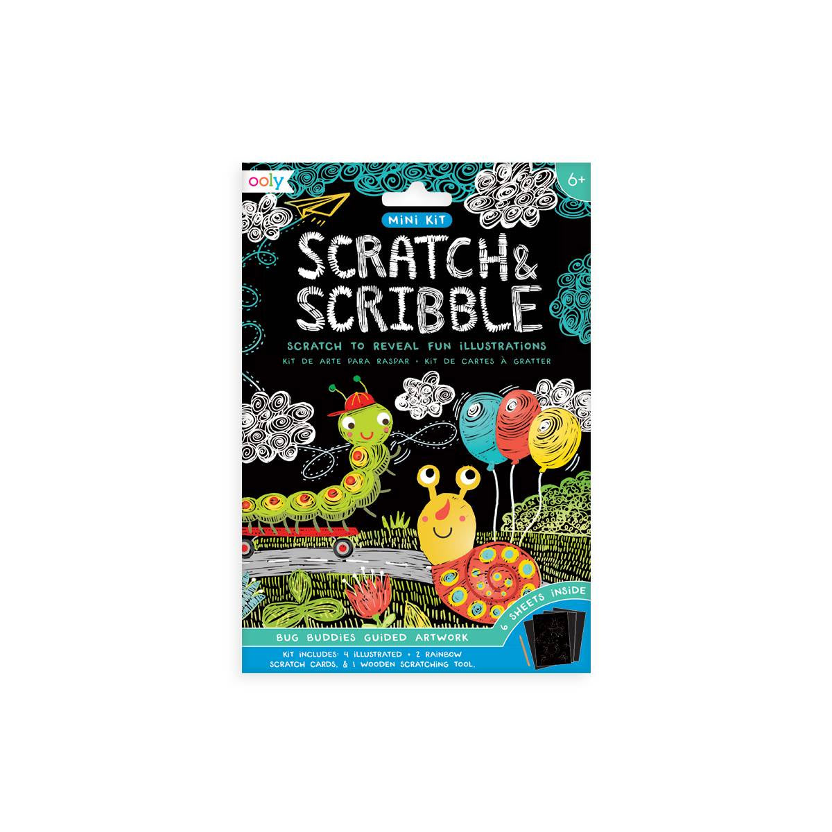 Scratch and scribble to find cute little Bug Buddies hidden on scratch cards waiting to show their rainbow hues. These buggy pals are easily revealed following the included guidelines of the 4 illustrated cards with the included wooden stylus. Create your own scratch art with 2 DIY blank cards. Everything you need is included in the travel-sized bug scratch art kit.