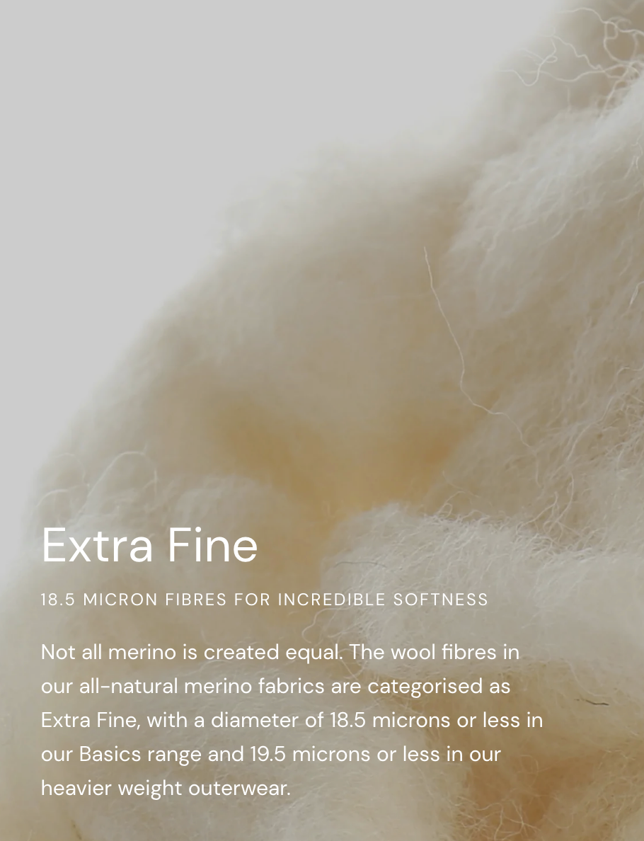 100% extrafine merino wool - 18.5 micron, 190gsm