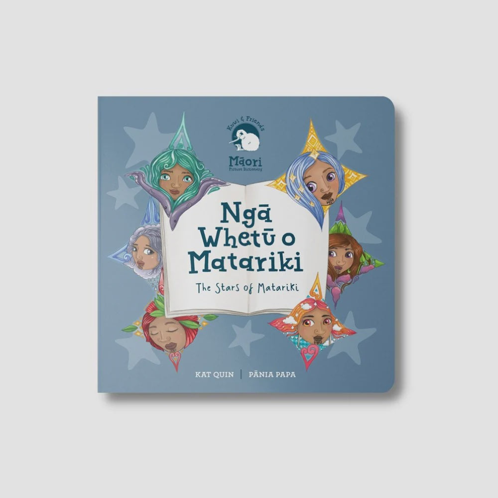 A beautifully illustrated board book of first words for little ones. Each spread includes the name of one of the nine stars of Matariki, its placement in the night sky and a colourful and detailed illustration highlighting the meaning behind each of the stars. A wonderful book to introduce and celebrate Matariki, while building vocabulary. Drawn from the multi-award-winning Kuwi & Friends Māori Picture Dictionary, and collated into bite sized pukapuka. A stunning matte laminated robust book with rounded corners, for durability and longevity. Perfect to learn and share with tamariki in the home or in the classroom. A portion from each purchase is donated to the 'Save the Kiwi' charity.