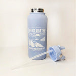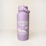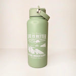 Life is Better drink bottle is perfect for outdoor adventures. It keeps drinks cold for 24 hours, is leak-proof, durable, and eco-friendly—ideal for hiking, camping, and more!