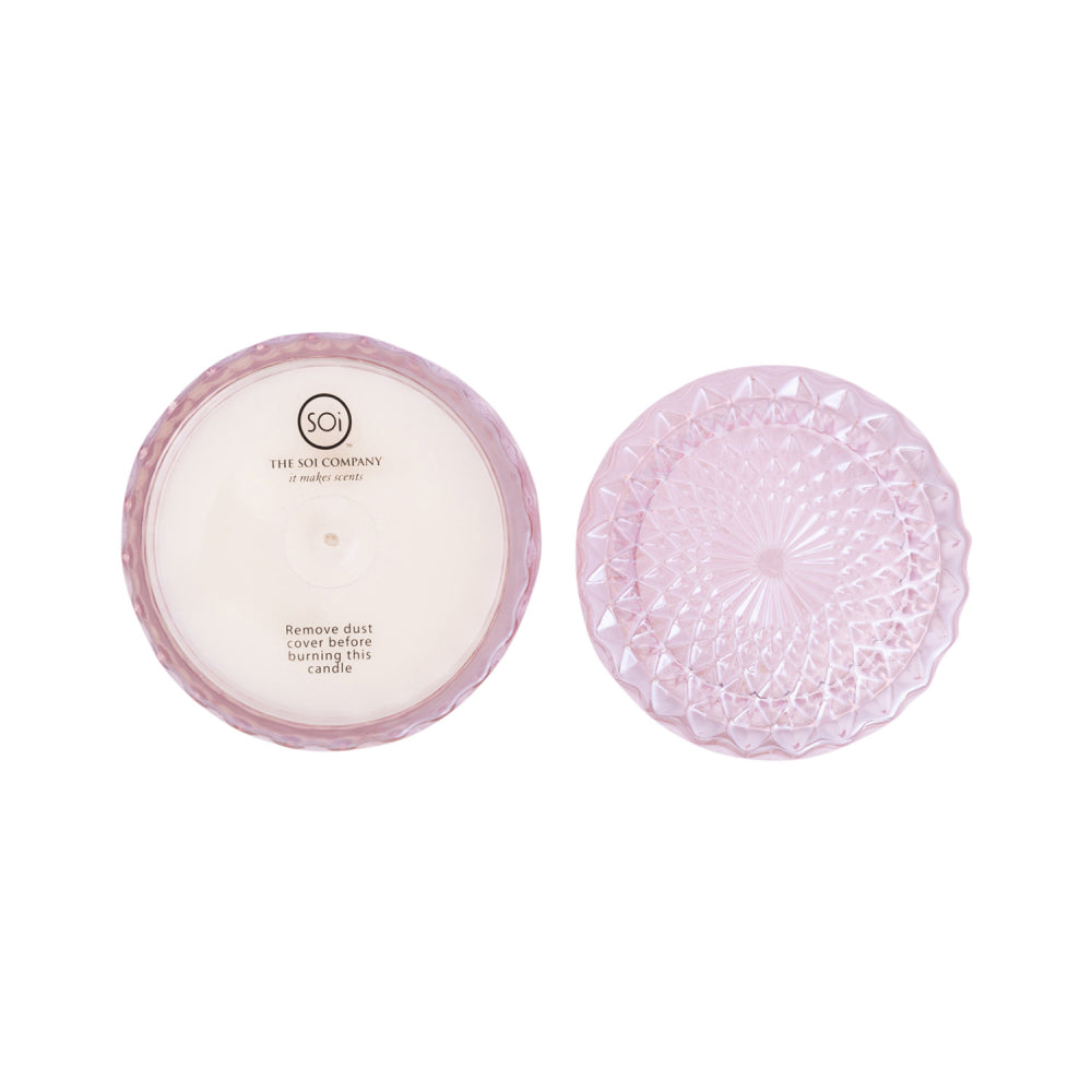 Indulge your senses with The SOi Co's luxurious home fragrance collection, thoughtfully crafted to elevate any space. Each SOi candle is meticulously hand-poured in the USA, using only the finest essential-infused fragrance oils and soy wax for an even, long-lasting and ultra-fragrant burn. The Petite Shimmer Collection features the cult-favourite diamond-cut glass vessels, in a smaller and more compact size. With a lower melting point that allows for a better release of fragrance oils and a more consistent scent experience, each vessel is adorned with a glass-cut lid, adding an extra touch of elegance and sophistication, that also keeps dust and debris at bay. Each fragrance is offered in a uniquely coloured art deco-inspired glass, each hue representing the essence of the scent profile within.