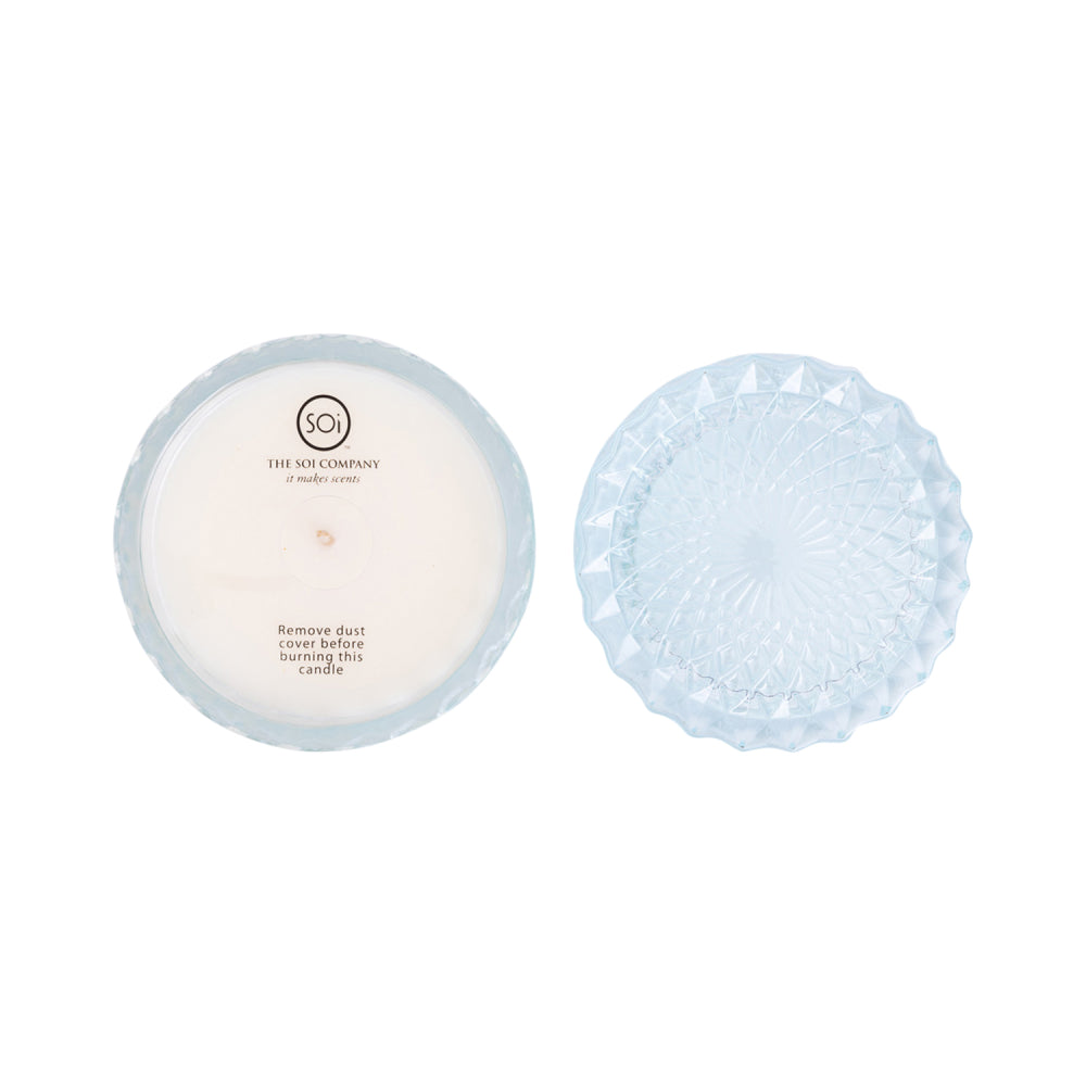 Indulge your senses with The SOi Co's luxurious home fragrance collection, thoughtfully crafted to elevate any space. Each SOi candle is meticulously hand-poured in the USA, using only the finest essential-infused fragrance oils and soy wax for an even, long-lasting and ultra-fragrant burn. The Petite Shimmer Collection features the cult-favourite diamond-cut glass vessels, in a smaller and more compact size. With a lower melting point that allows for a better release of fragrance oils and a more consistent scent experience, each vessel is adorned with a glass-cut lid, adding an extra touch of elegance and sophistication, that also keeps dust and debris at bay. Each fragrance is offered in a uniquely coloured art deco-inspired glass, each hue representing the essence of the scent profile within.