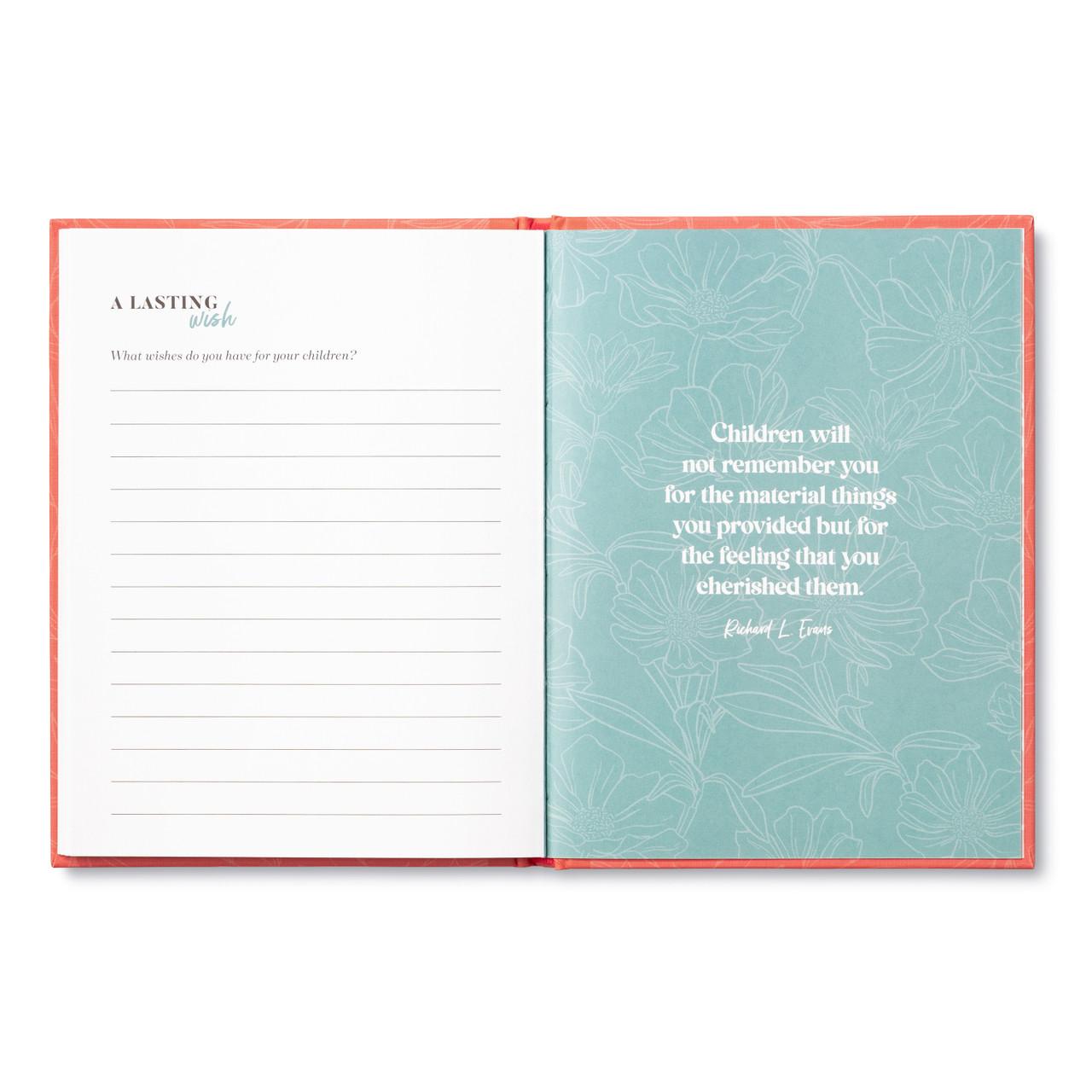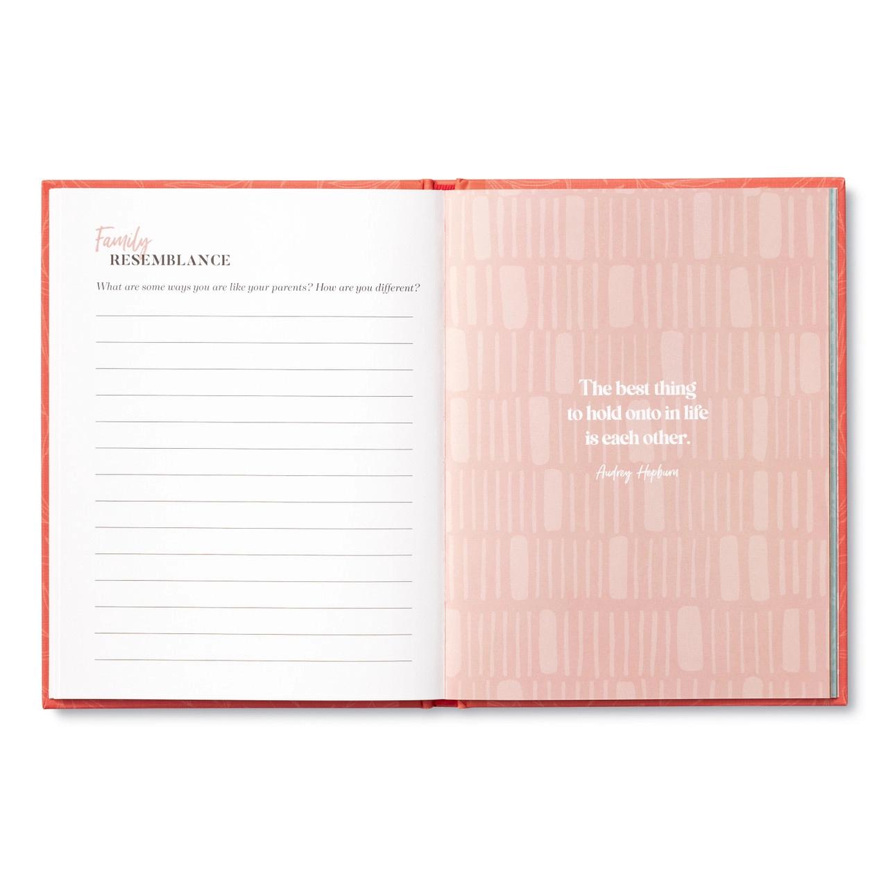 Inside, you’ll find thoughtful prompts to record stories that have shaped your mother’s life, such as: