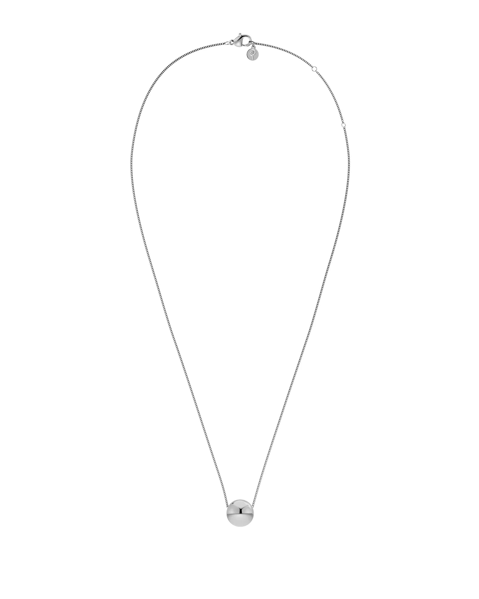 Sphere captures celestial elegance with its 12mm shiny steel globe suspended on a delicate adjustable chain (42-48cm). The sphere glides effortlessly along the chain, creating dynamic movement that catches light from every angle – a perfect union of simplicity and intrigue.