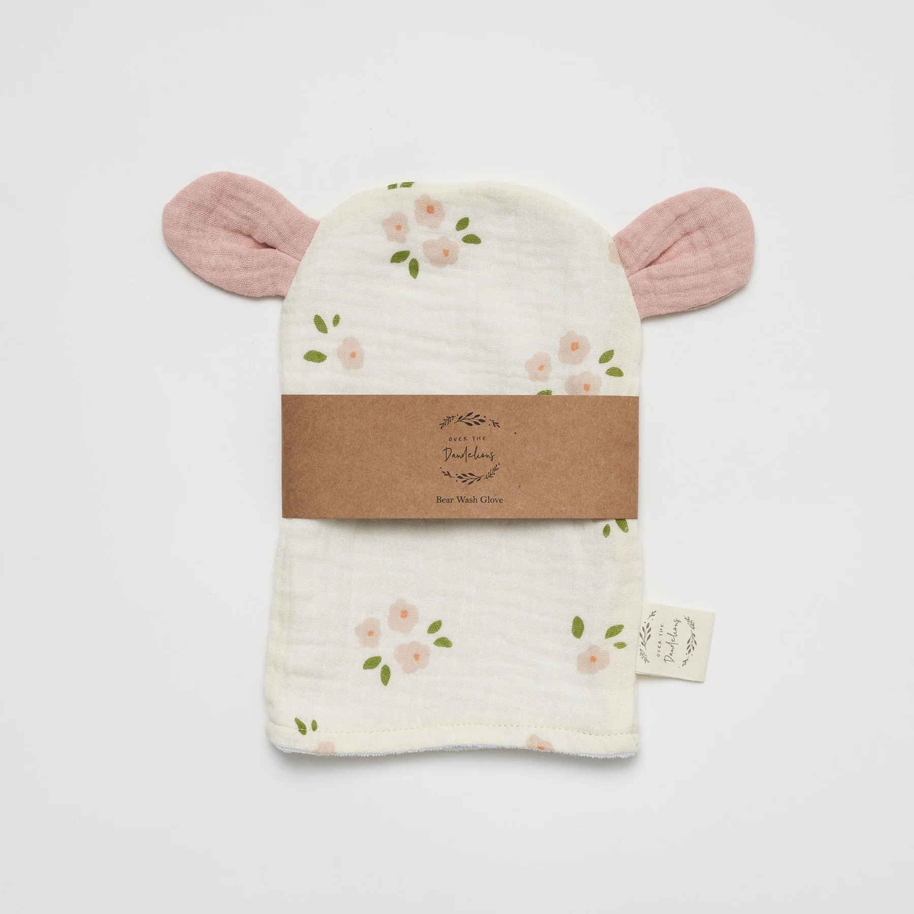 Over the Dandelions - This soft and fun wash glove is made from organic muslin and has terry cotton inside. When muslin gets wet is becomes even softer! Perfect for washing little faces.
