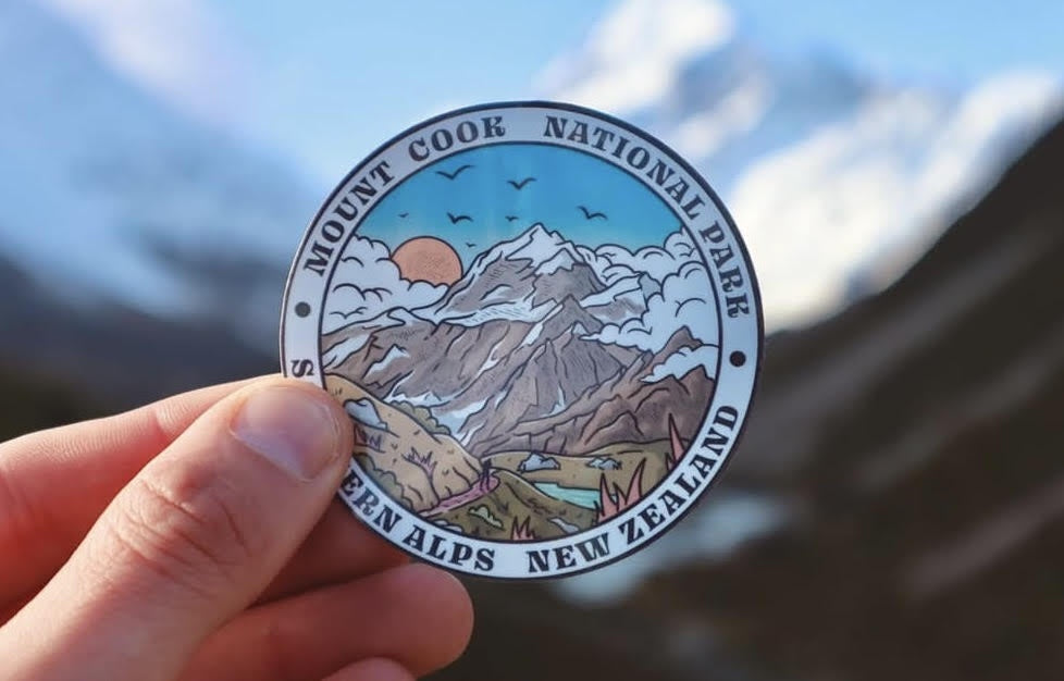 Eventides Stickers are homemade in Queenstown by local artist Luke Ridgeway