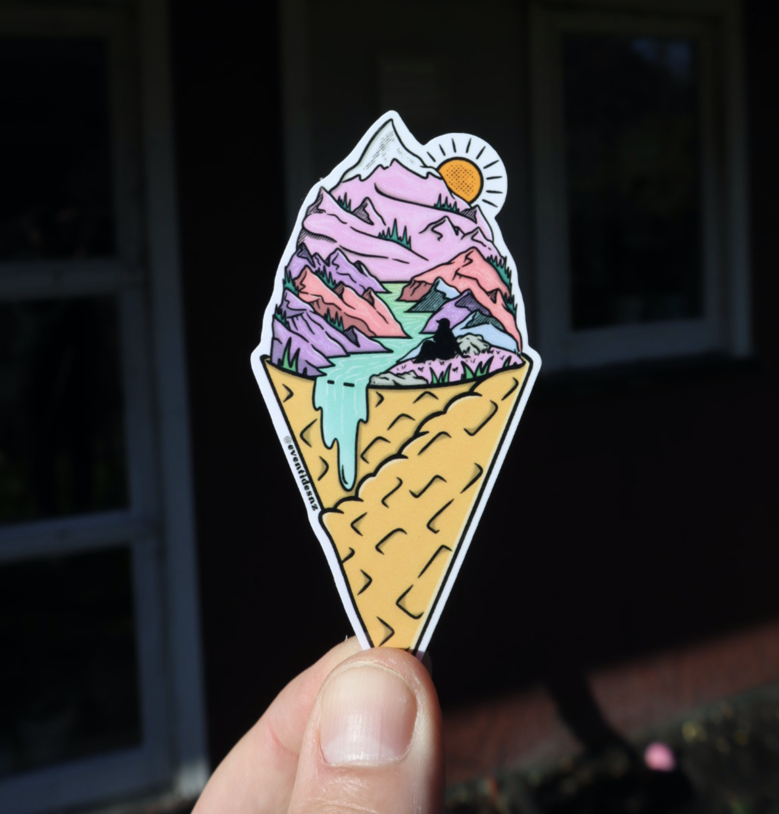 Eventides Stickers are homemade in Queenstown by local artist Luke Ridgeway