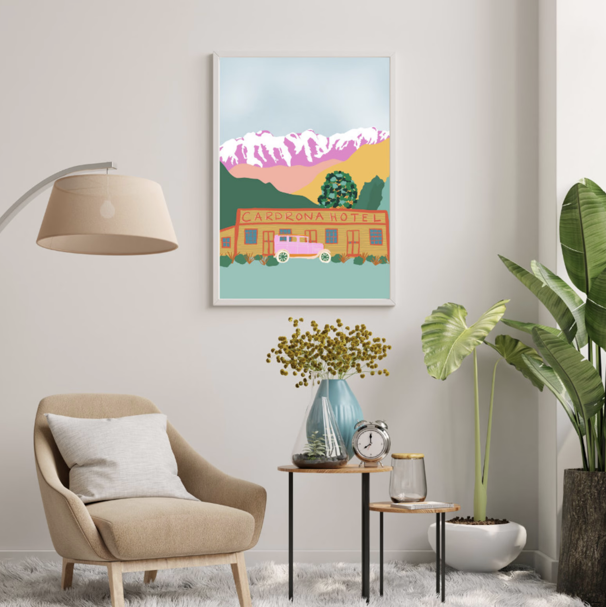 This stunning artwork by West Moor Design captures the timeless charm and historic beauty of the Cardrona Hotel.