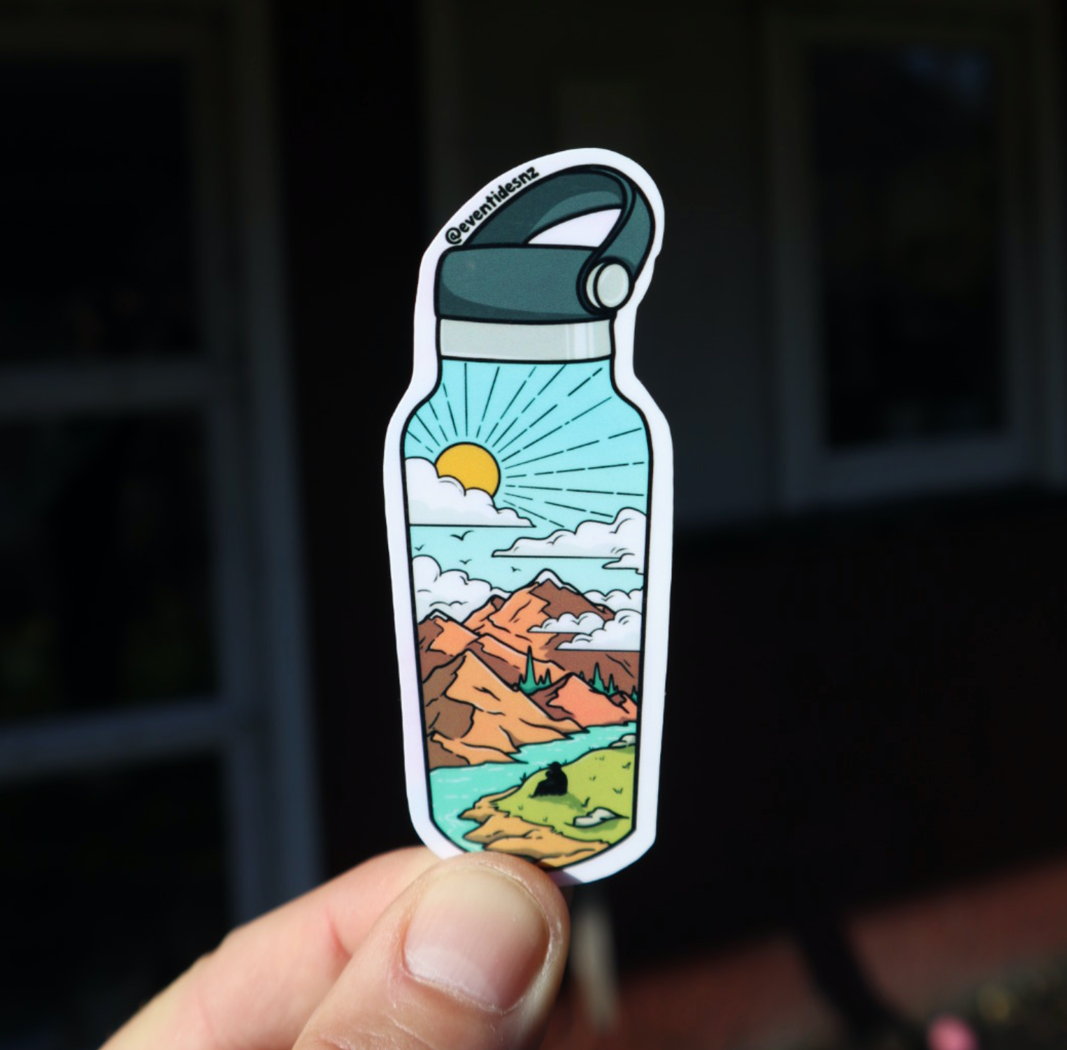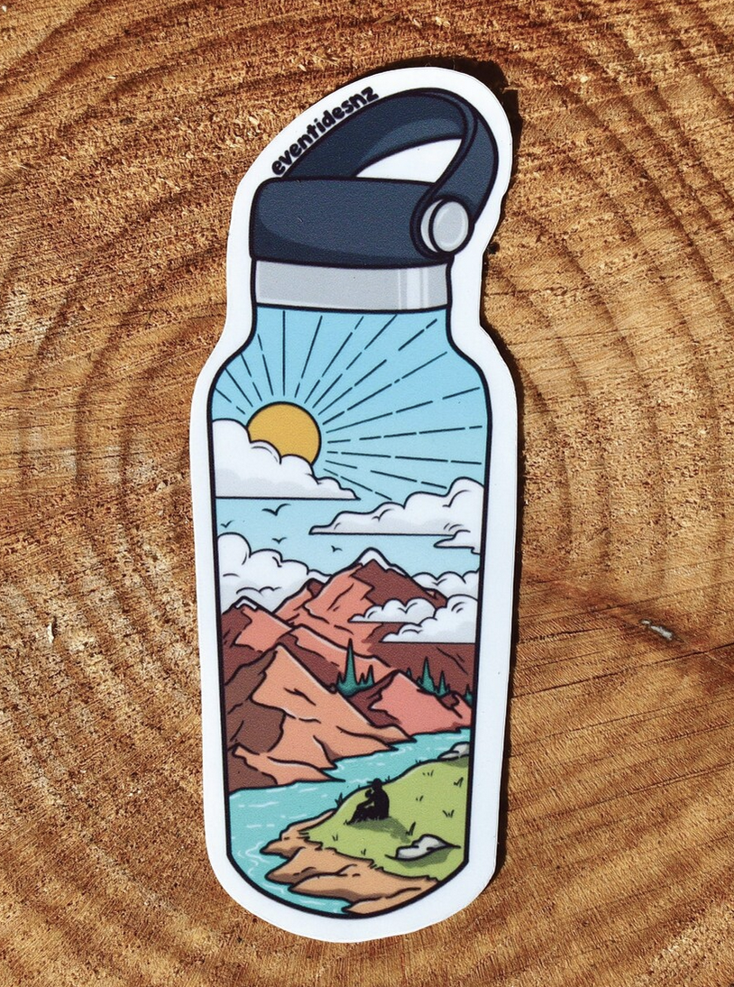 Eventides Stickers are homemade in Queenstown by local artist Luke Ridgeway Homemade & Water resistant. This sticker is used with glossy vinyl, which give's it a vibrant colourful finish. Ideal for Water Bottles, Laptops, Phone cases and more!