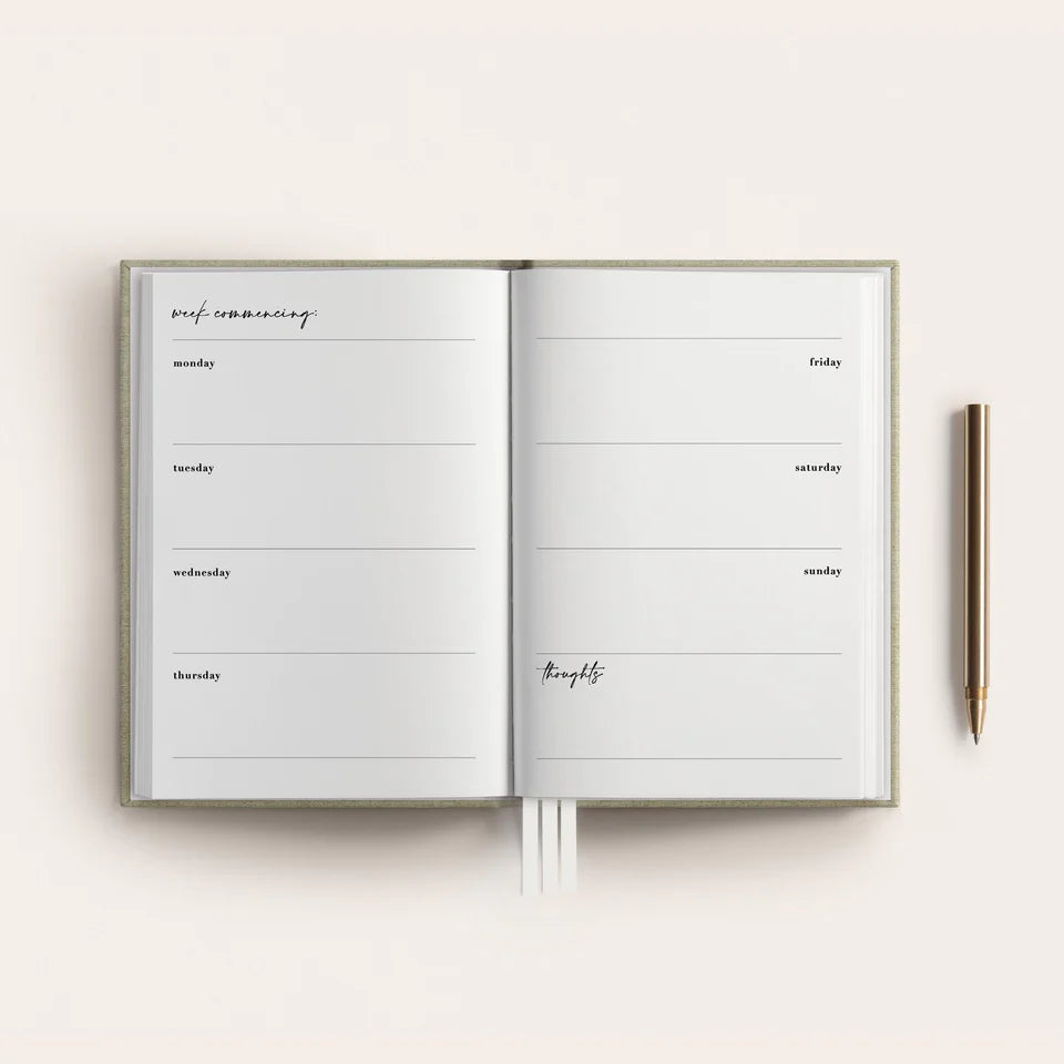 The pages are dateless, the calendars are blank. Jump in for weeks or months then take a break, pick up where you left off again when you're ready. A page can be any week, from any month.