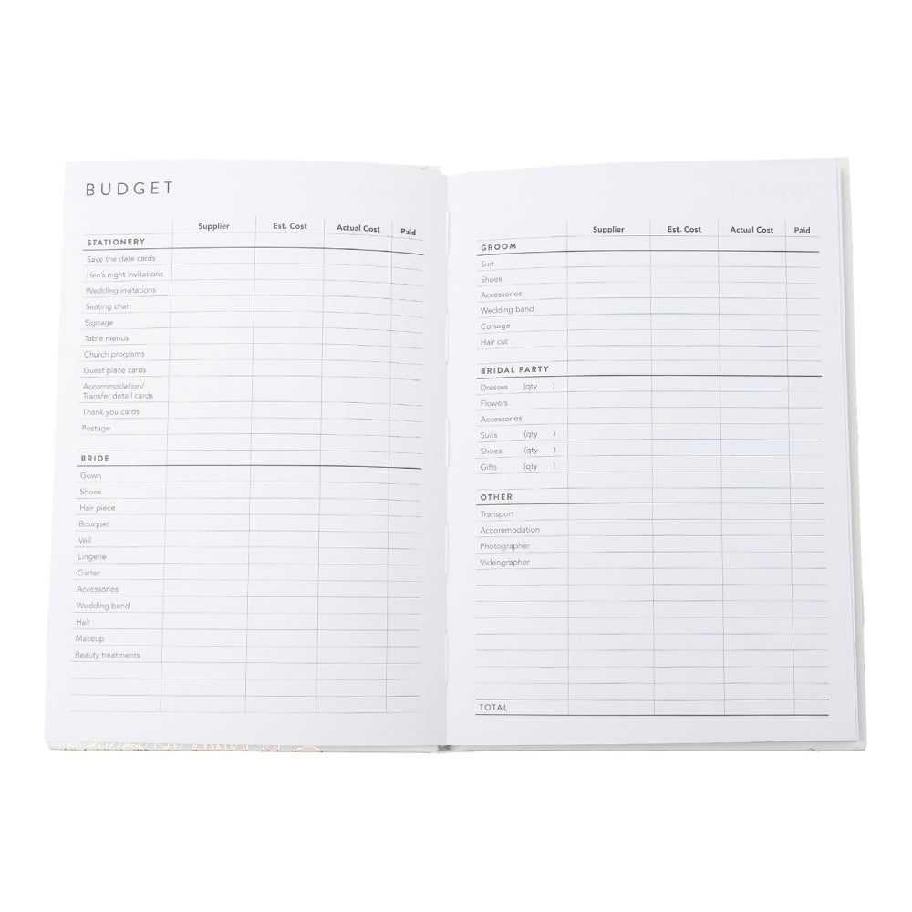 Our highly anticipated Wedding range has officially landed! Featuring an array of gifting and décor concepts that celebrate all things love, marriage and engagement, this collection recreates top performers in fresh designs including verses, frames, wishing wells, keepsake boxes, stationery, mugs and pillowcases, alongside fun new arrivals! With each product accenting intricate detailing, Wedding captures the essence of timeless elegance and sophistication with the perfect splash of fun. Features: Features exquisite gold foil detailing! Great gift idea! Different design on each page! Product Information: Packaging: Plastic sleeve with belly band Size: 21 x 2 x 15cm Details: A5 hardcover wedding planner with gold foil details and unique printed pages.