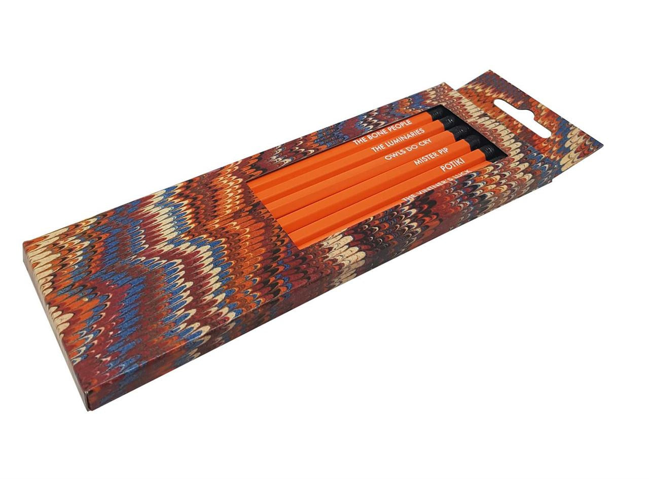 6 eraser tipped pencils in a beautifully illustrated box featuring New Zealand themes. Each pencil is uniquely printed.