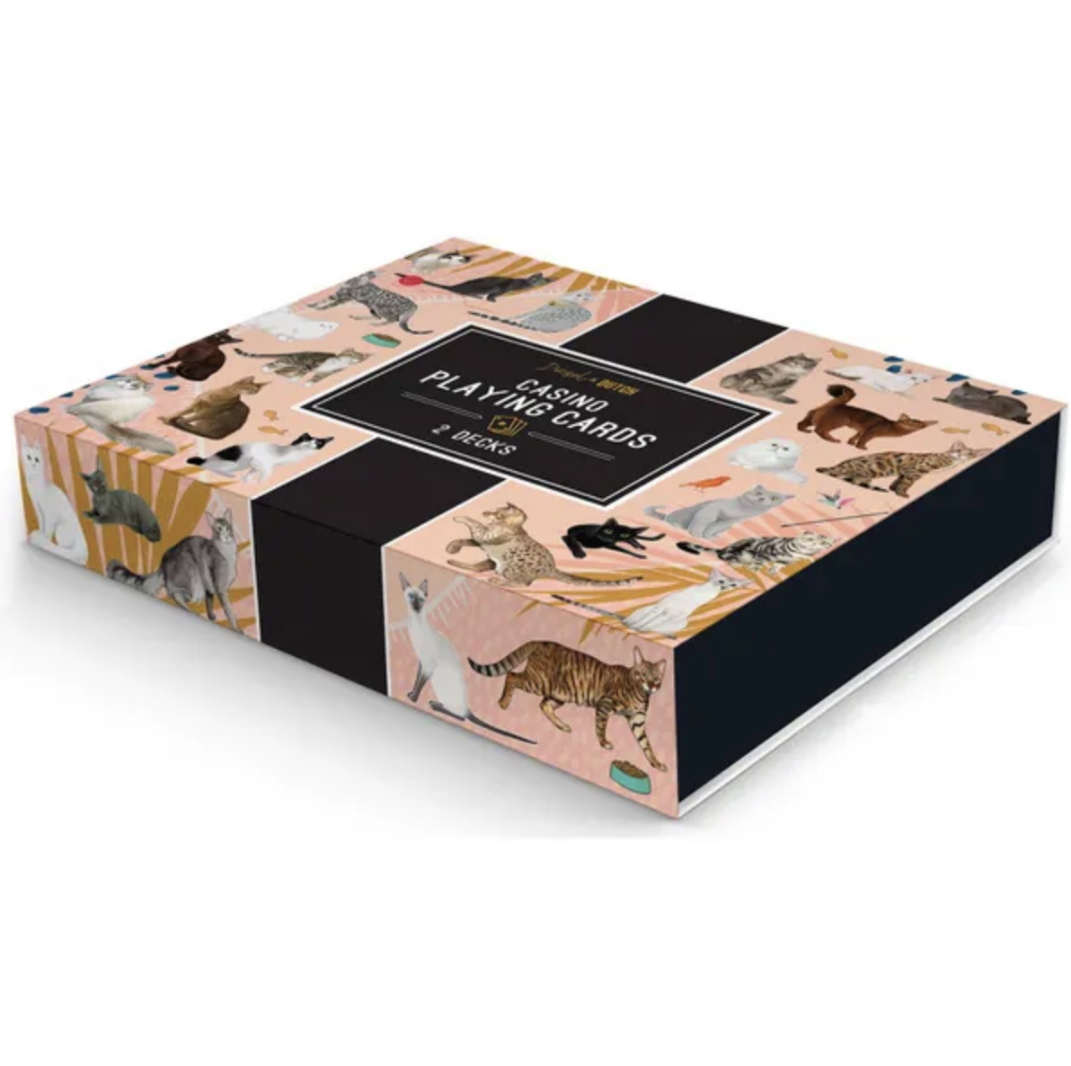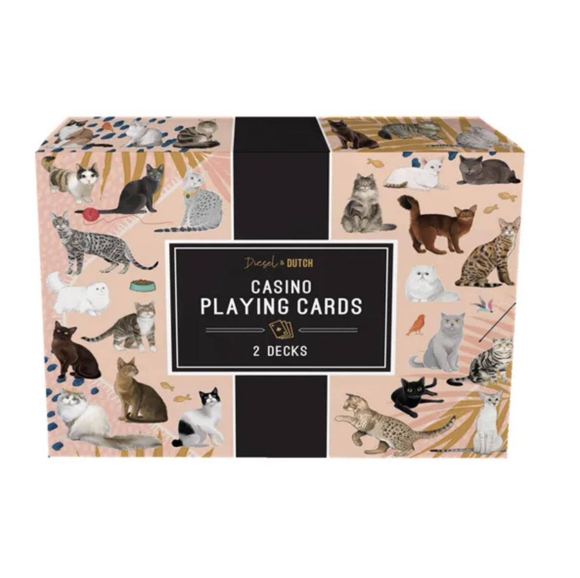 Two 54 piece quality casino playing card decks, with cards featuring 54 different Cat breeds. Hours of fun and entertainment playing with 3.5 x 2.4 inch playing cards. After play, the cards can be packed away in the storage tray and box for next time.