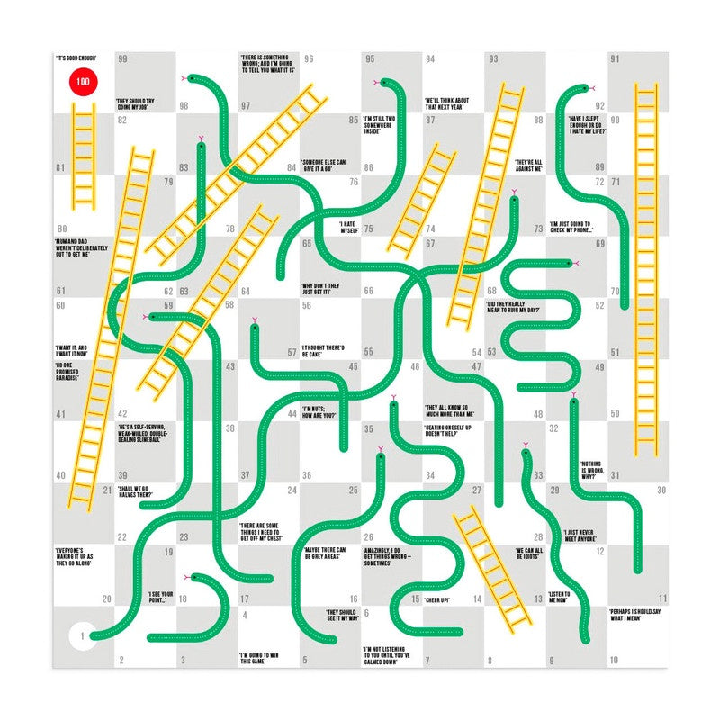 The School of Life has taken Snakes and Ladders and turned it into a game about emotional life: the ladders represent all those moments when you learn how to be more of a grown-up, the snakes the times when you end up acting, against your better nature, like a tantrum-prone toddler. Depending on where you land, you pick up cards that outline, with humour and wisdom, the ingredients of emotional maturity and ask you to share insights from your own life. As we play, we're entertained, amusingly educated and subtly invited to continue to try to grow up with a goal that, as the game kindly implies, none of us ever quite master completely.