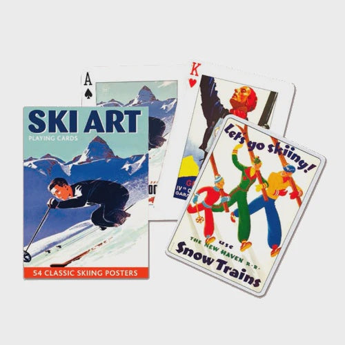 Made from the finest quality playing card board, these Piatnik cards feature 52 unique images with each card face showing a different image of retro ski posters or artwork and are presented in a durable tuck box.